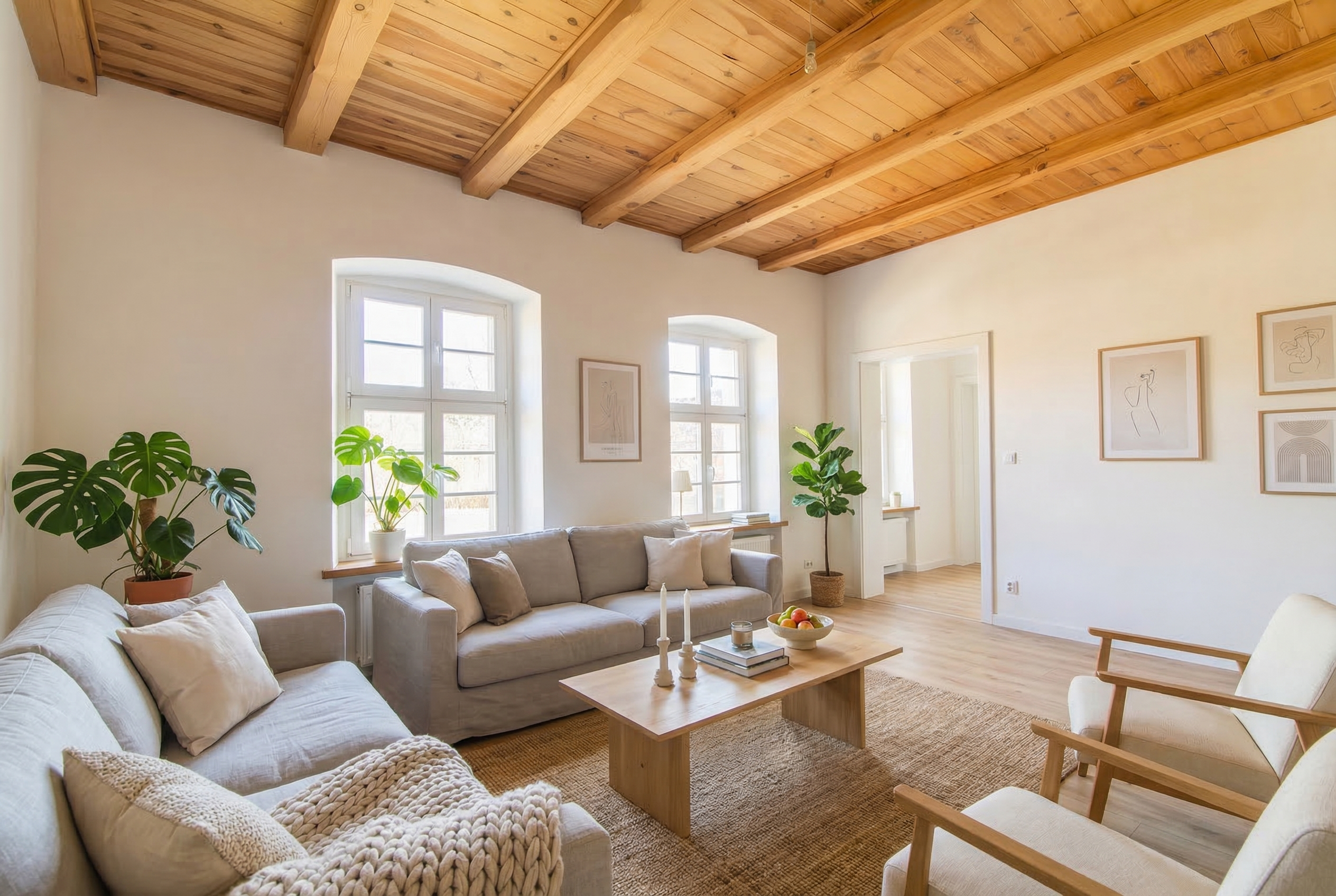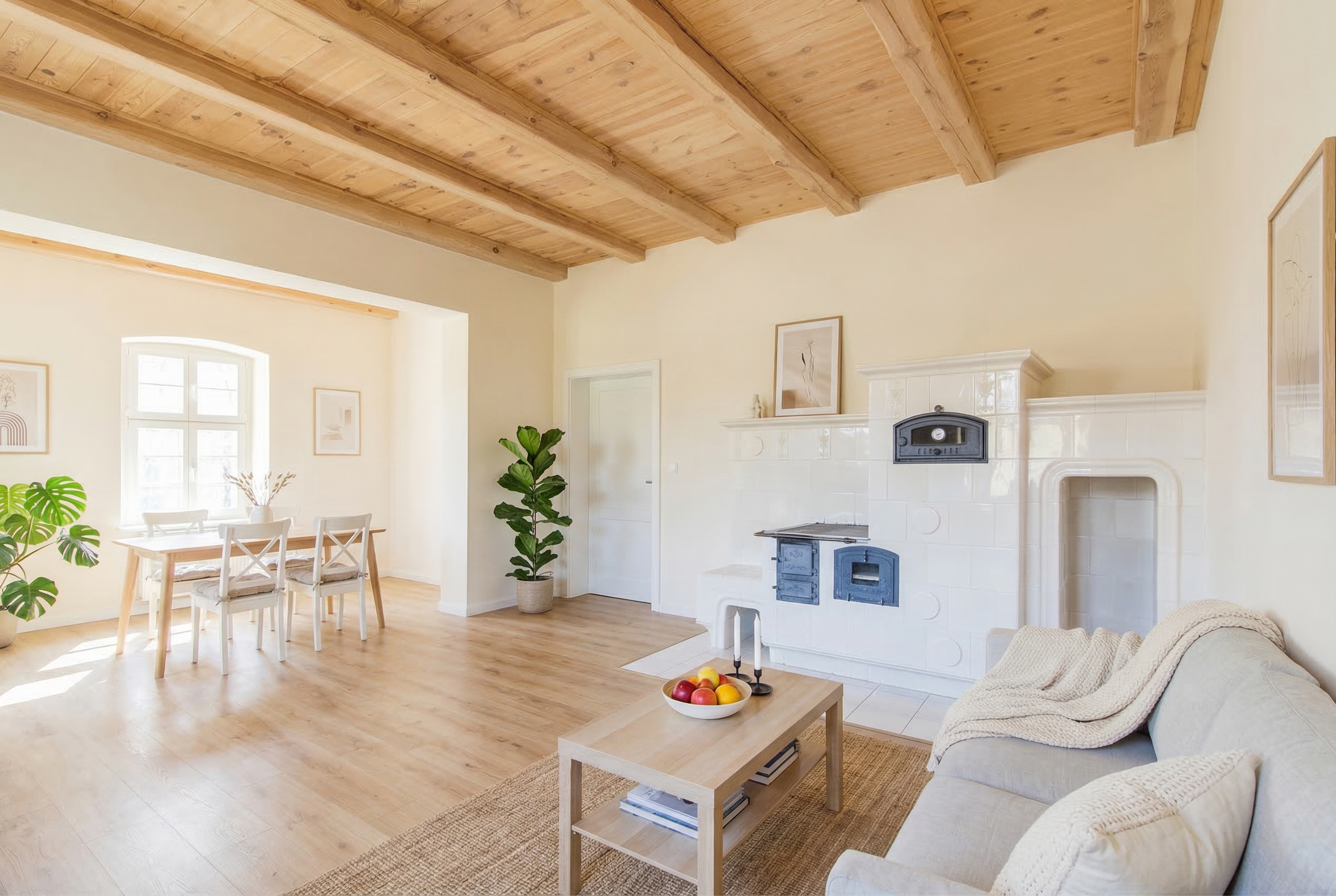 - → Jasna biel + drewno